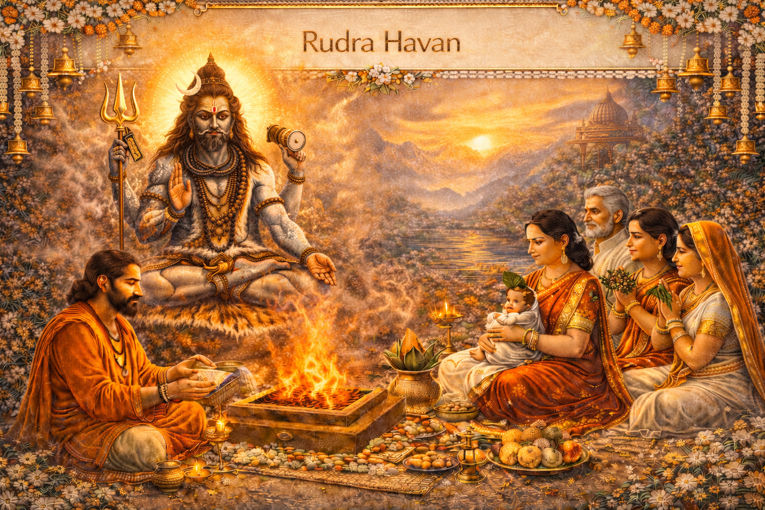 Rudra Havan is performed to receive Lord Shiva’s blessings.