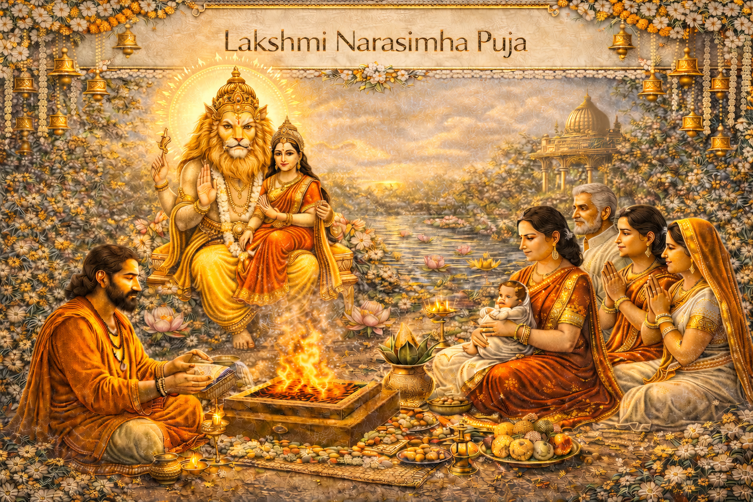 Lakshmi Narasimha Puja is performed for divine protection and prosperity.