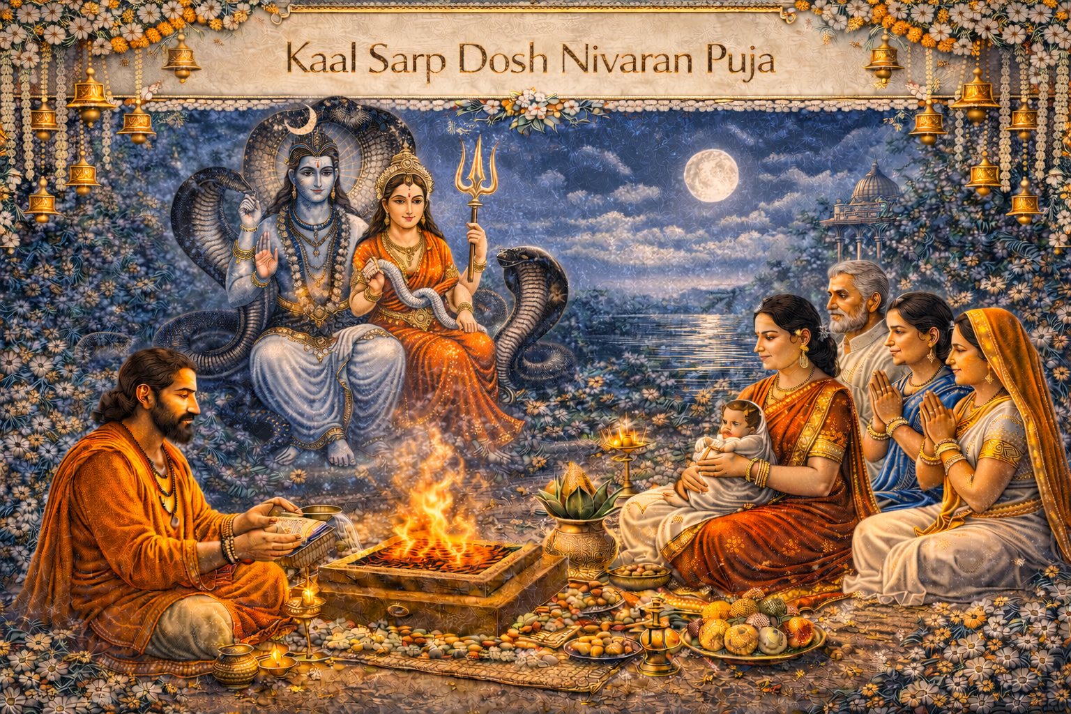 Kaal Sarp Dosh Nivaran Puja removes severe planetary imbalance in a child’s chart.